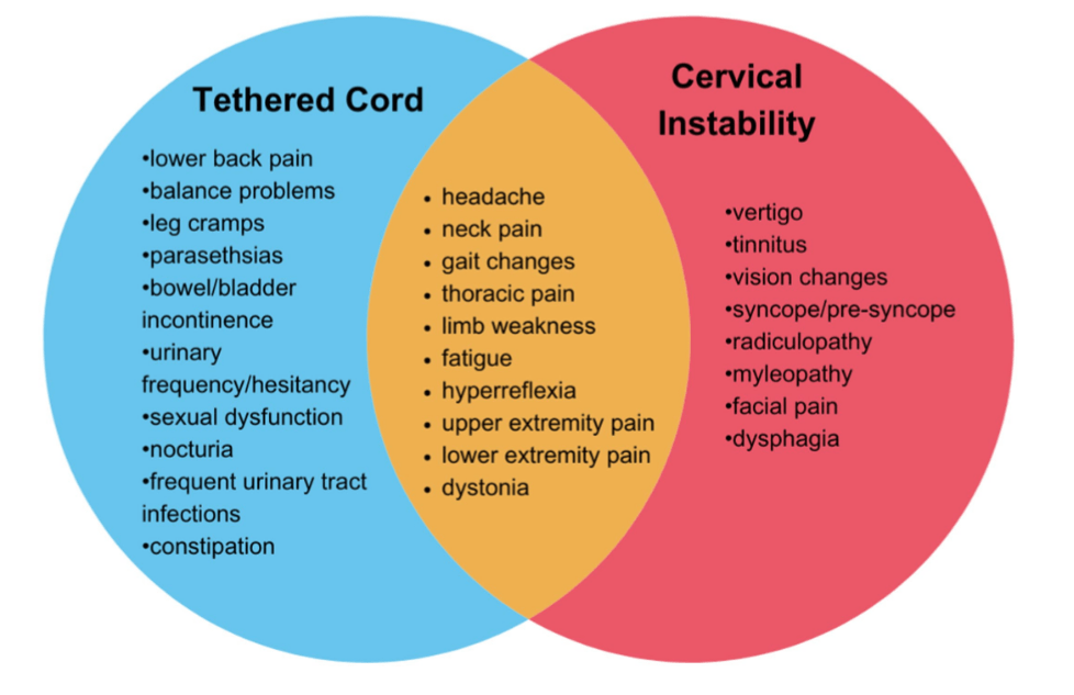 8.Tethered cord eller fjättrad ryggmärg på svenska, är en ovanlig diagnos men vanligare vid hEDS . se länk illustrationen nedan är hämtad däriifrån